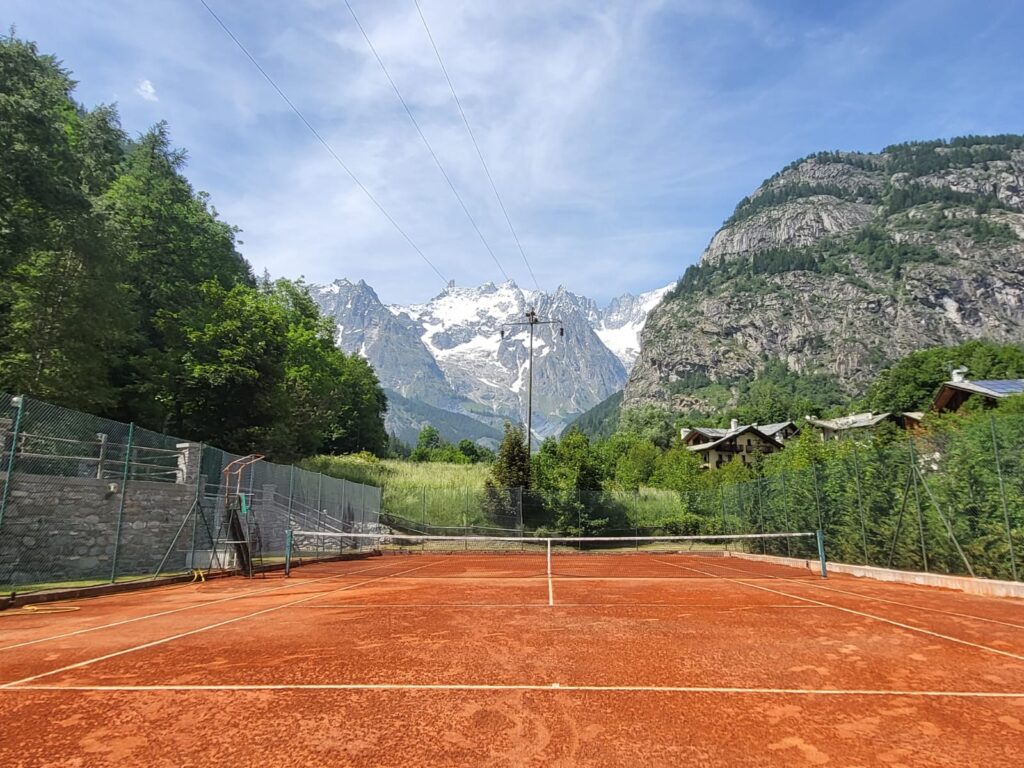 Siamo a Courmayeur, dove abbiamo realizzato un bellissimo manto in terra rossa, incorniciato da uno scenario da sogno: ai piedi del Monte Bianco 🏔️Un campo